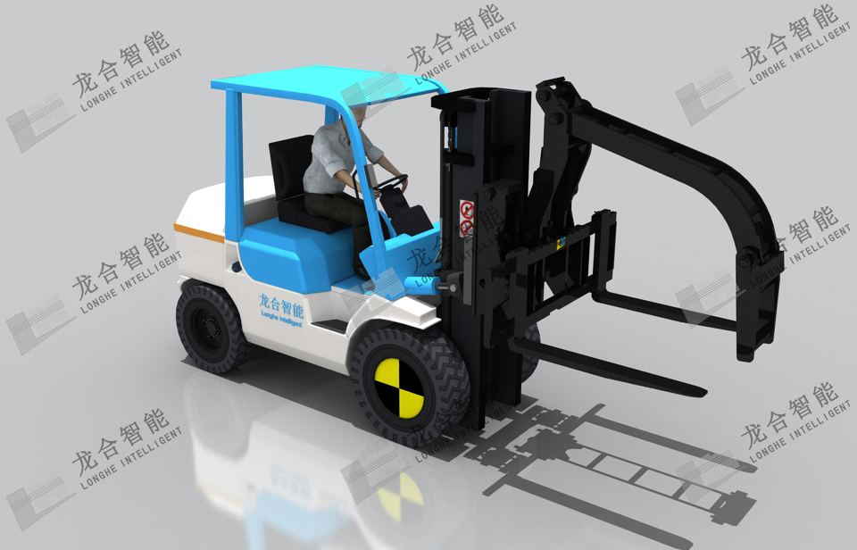 针对于钢管光滑、易溜不易于夹持的难点,龙合智能在设计生产钢管夹时采用倾翻(前倾40° 、后倾 6° )和稳压等功能,大大提高叉车作业的灵活性、安全性和搬运效率。