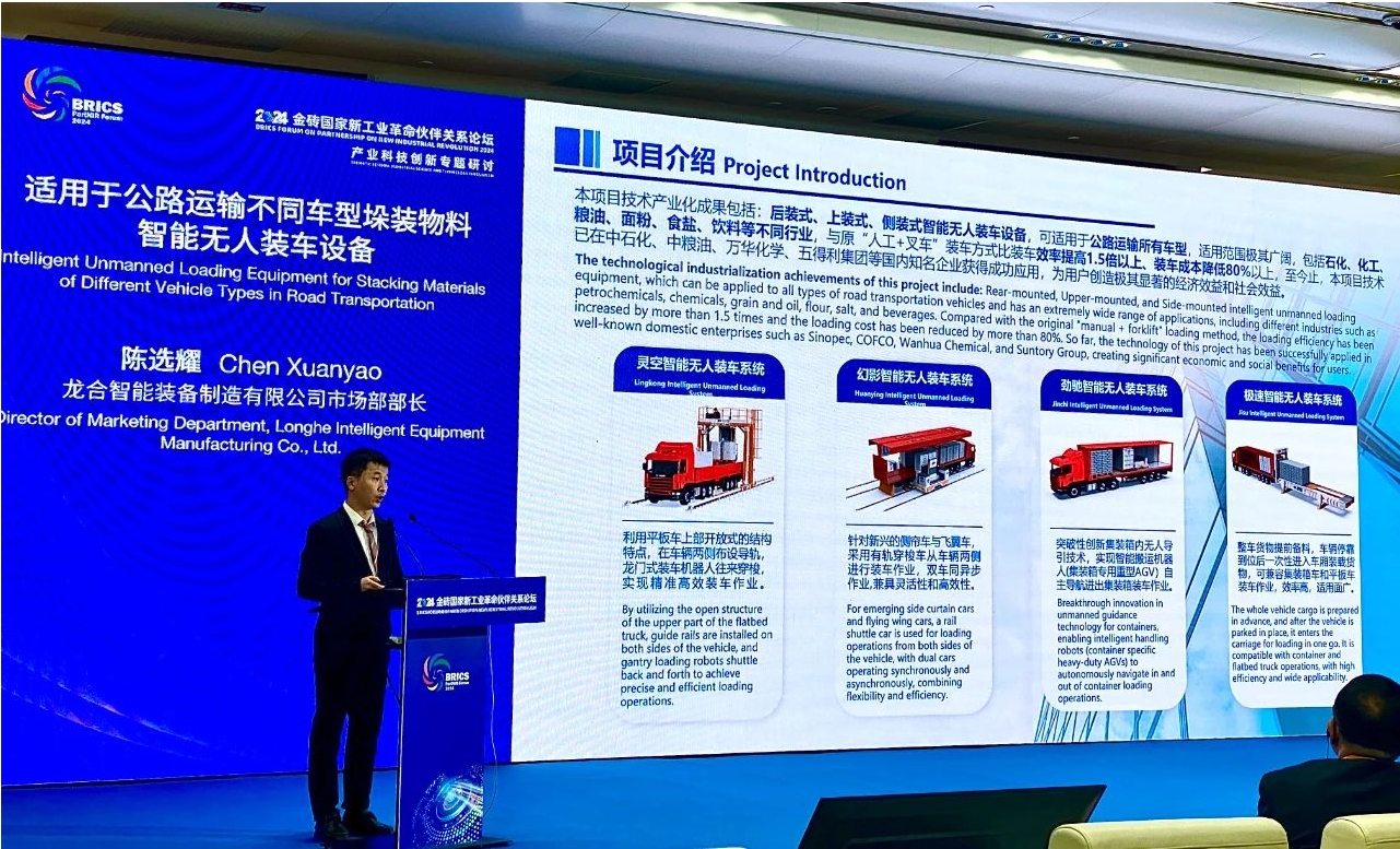 9月10-11日,2024金砖国家智能制造创新发展专题研讨在厦门国际会展中心盛大召开。本次研讨会在全国范围内择优遴选15家面向金砖国家的先进适用技术项目,推动金砖国家在绿色技术、产品、装备、服务以及产品碳足迹管理等方面的交流合作。本次会议以“汇聚金砖合作力量,引领智造创新未来”为主题,龙合智能作为智能制造领域的企业代表出席本次研讨会,并向各国来宾分享我司在智能仓储物流领域的创新发展成果。