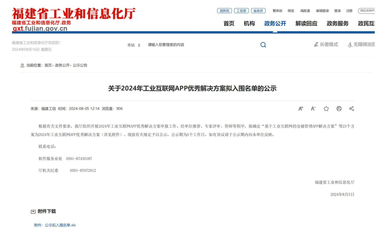 【喜报】公司仓管系统入选福建省“2024年工业互联网APP优秀解决方案”!