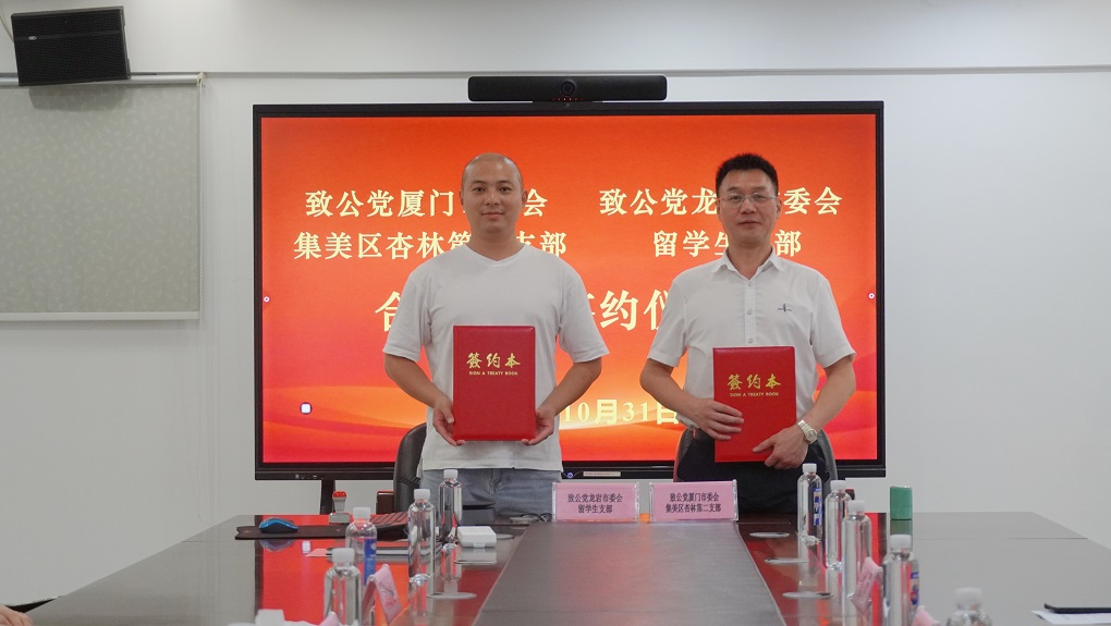 随后,致公党厦门市委会和致公党龙岩市委会基层组织签署结对共建协议,结为友好支部,推进基层组织建设资源共享、优势互补,共同深化基层组织交流合作,推动厦龙致公党新时代山海协作走深走实。