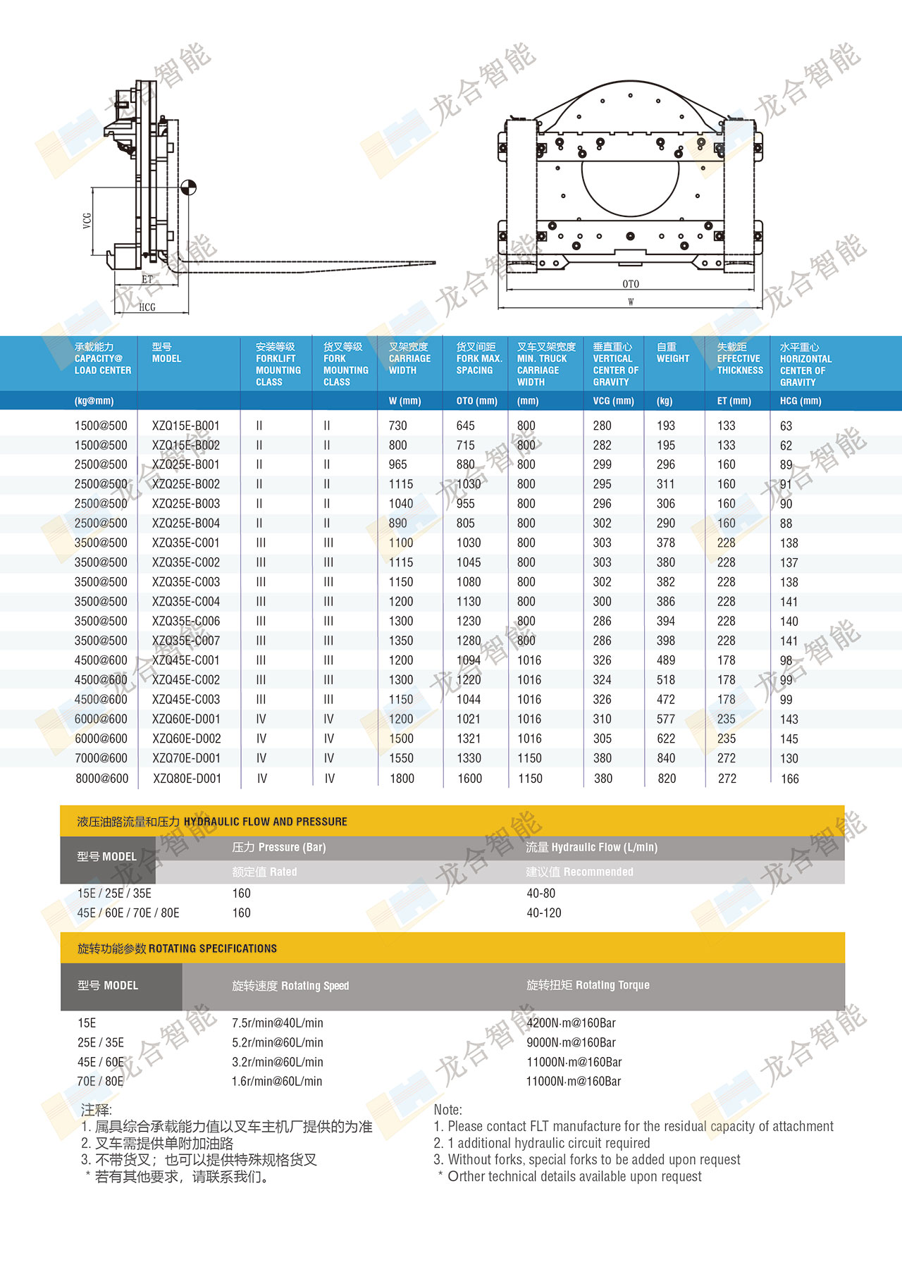液压驱动旋转,广泛应用于需要将货物进行旋转或将容器进行倾倒作业的场合,诸如机加工、资料回收、冶炼浇铸、石化和制药等行业。旋转器配置侧移功能装置后,在叉车进行堆垛、装卸车作业时,可以变得更加顺畅高效。