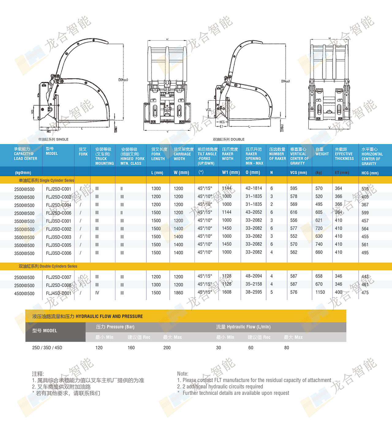 废料夹能增大货叉架的前倾和后倾角度,实现向上倾斜10°-15°,向下倾斜45°,同时抱臂能起到抱住货物,避免货物在运输过程中前倾导致货物损坏的问题。废料夹还能与铲斗等容器配合使用,可以安全高效的倾倒容器内的散装货物。广泛应用与物品回收、夹持废料等场合,大大提高了叉车的灵活性和装载、卸货的灵活性。